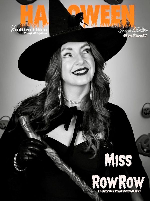 Miss Row Row joins Jinx DeVill with a cover in the Halloween edition of Smitten Kitten magazine.