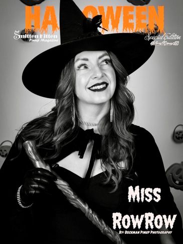 Miss Row Row earns a cover in the Halloween edition of Smitten Kitten magazine. Photography credits - Stephen Beckman Pinup Photography