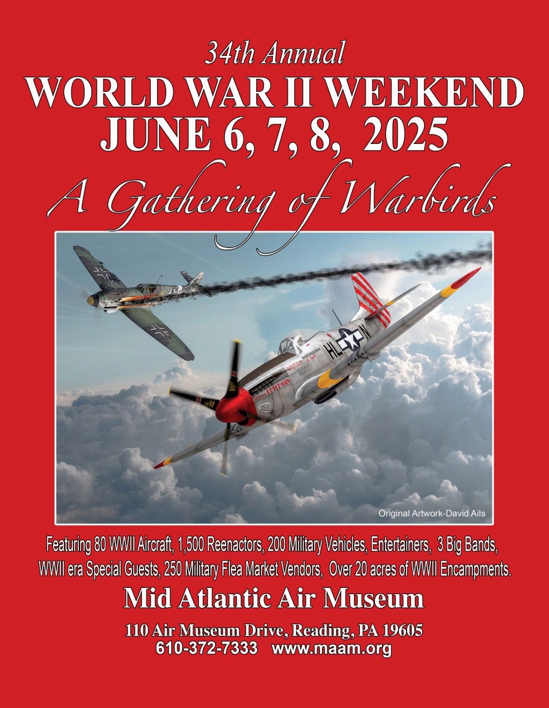 WWII Weekend is in its 33rd year of existence and has become the main fundraising event for the Mid Atlantic Air Museum. Your attendance, allows us to continue in our mission to enhance the publics appreciation and unders